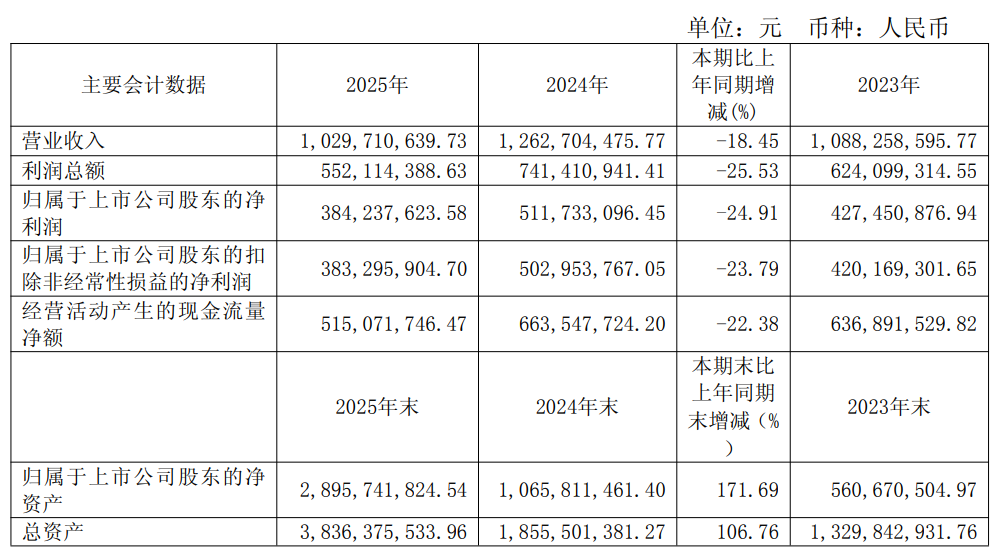4月19日晚间,陕西旅游(603402)披露2025年年报,公司营业收入为10.30亿元,同比降低18.45%;归母净利润为3.84亿元,同比降低24.91%;扣非归母净利润为3.83亿元,同比降低23.79%。公司拟向全体股东每股派发现金红利2元(含税)转增0.3股。