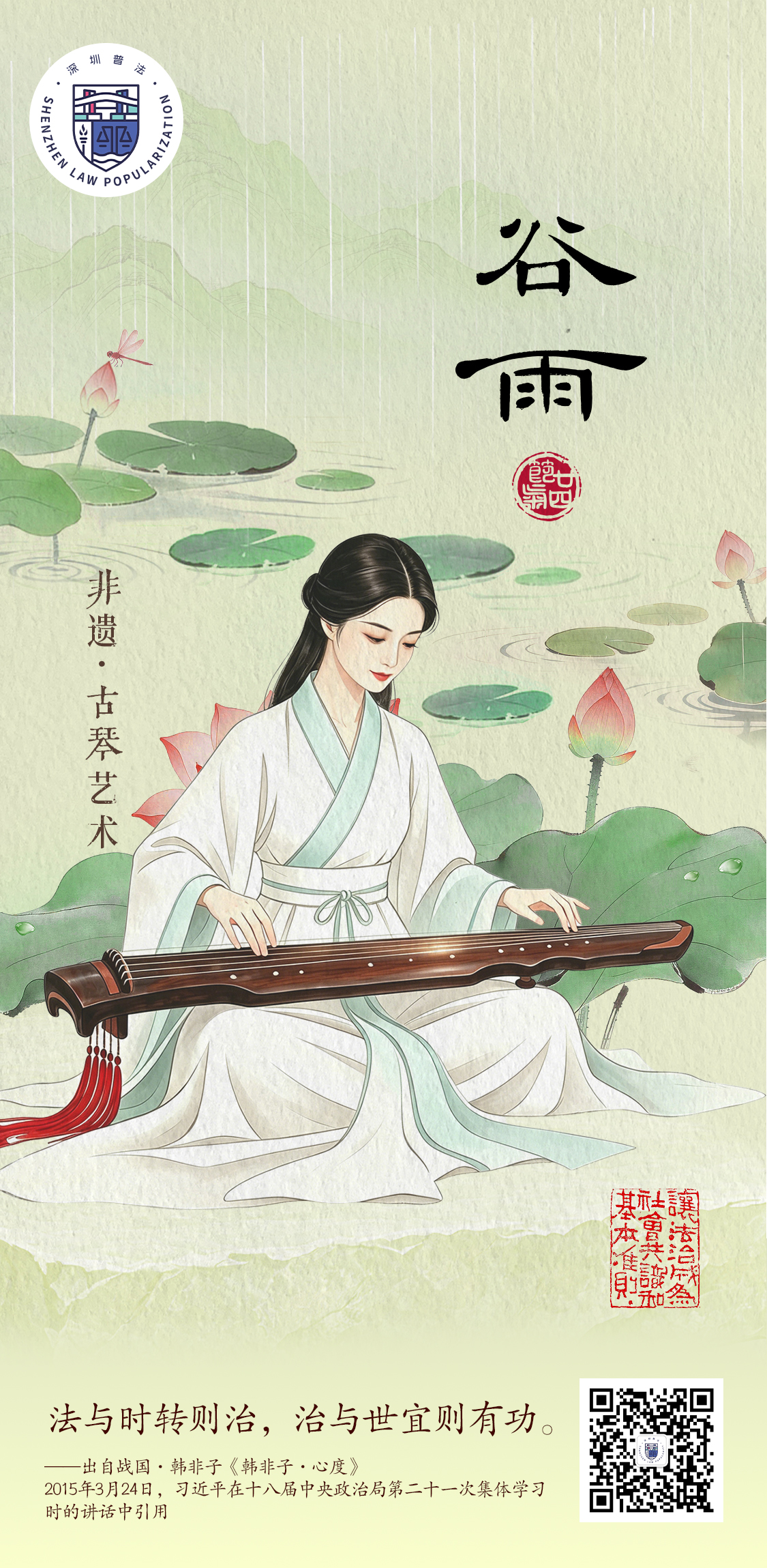#节气 #谷雨 雨润百谷,法与时行。今日谷雨,我们以非遗古琴艺术为引,以法治金句为鉴,传承文化根脉,弘扬社会主义法治精神。