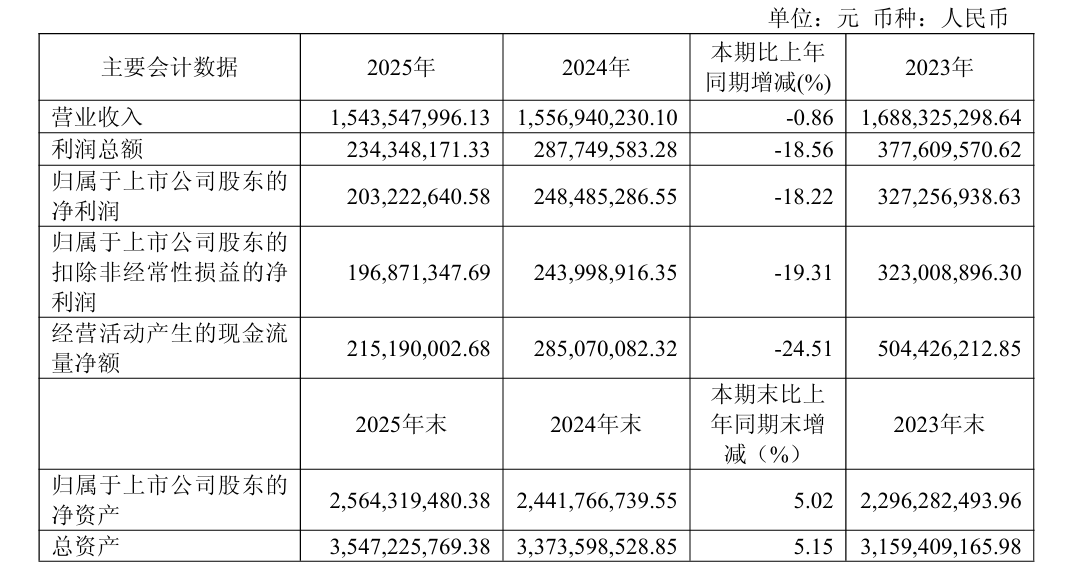 4月21日晚间,好太太(603848)披露2025年年报,报告期内实现营业收入15.44亿元,同比下降0.86%;归属于上市公司股东的净利润2.03亿元,同比下降18.22%,创公司上市以来新低。公司拟以实施权益分派股权登记日登记的总股本为基数,按每10股派发现金红利2元(含税)向全体股东派发现金股利。