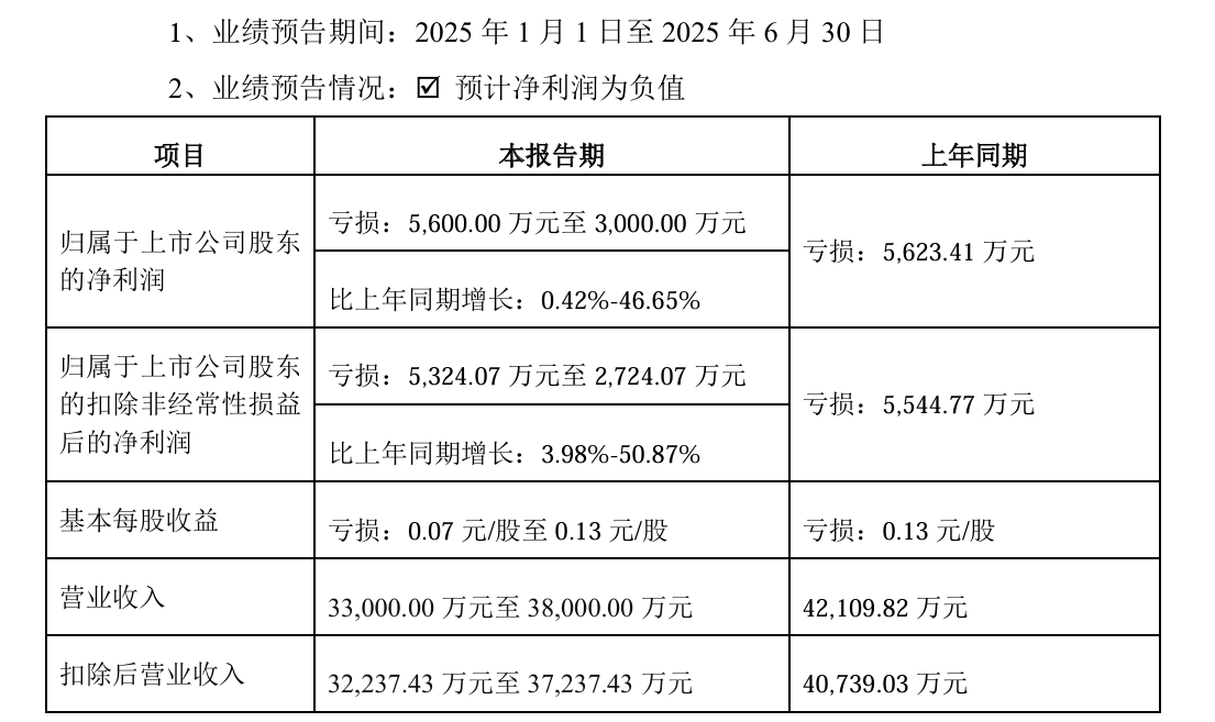 7月14日晚间,永和智控披露业绩预告,预计2025年上半年实现营业收入3.3亿元至3.8亿元,上年同期为4.21亿元;归属于上市公司股东的净利润亏损3000万元至5600万元,上年同期亏损5623.41万元;扣非净利润亏损2724.07万元至5324.07万元,上年同期亏损5544.77万元。